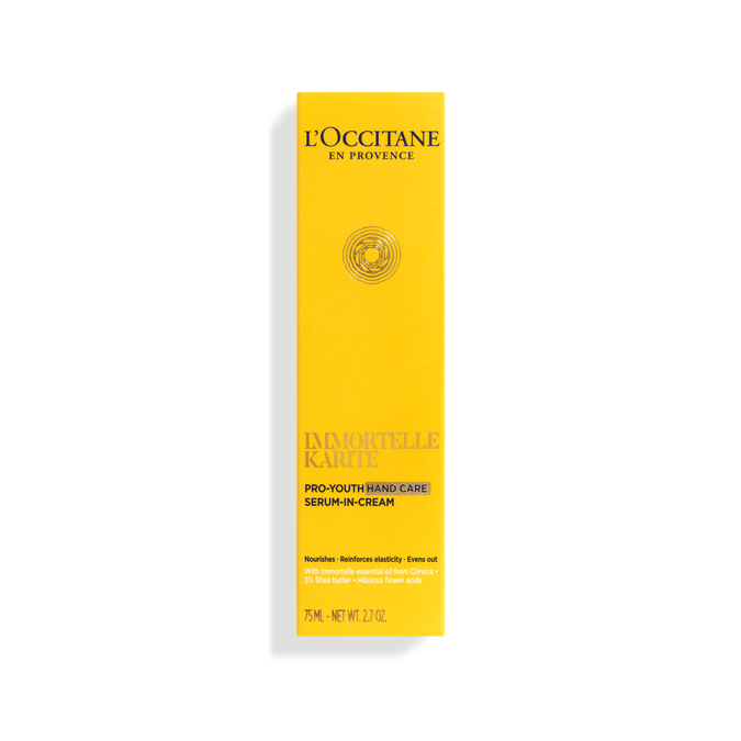 Serum krem texnologiyası dərinin sıxlığını və möhkəmliyini artıraraq immortel efir yağının sürətli nüfuzunu təşviq edir. Güclü inqridiyentlərdən ibarət kokteyli ehtiva edən tekstura tez əmilir. Zamanla əllər hamarlaşır, dolğunluq və parlaqlıq qazanaraq olduqca gənc görünür.