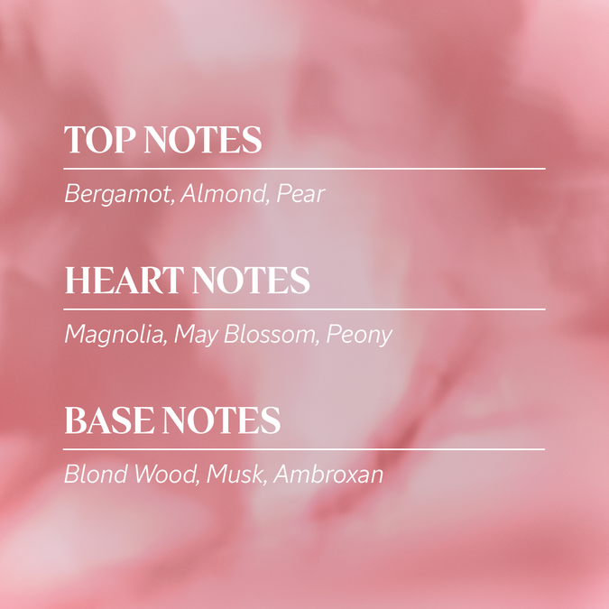 Badam və armudla müşayiət olunan berqamotun üst notları ilə oyanan ətir tezliklə yerini çiçəkli ürəyə verir. May çiçəyi, pion və maqnoliya müşklə qarışaraq şirin, uzun müddətli iz buraxan sarı ağac notlarının əsasını üzə çıxardır...
