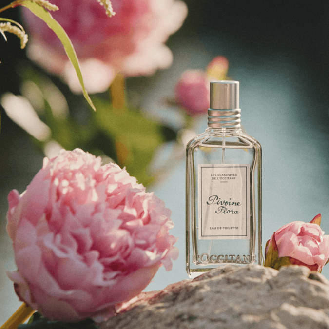 Pivoine Flora Eau De Toilette kölgəli və özəl yer axtarışında günəşli çiçək bağçasında gəzərək, yeni sevgilisi ilə əl-ələ verərək keçirdiyi uzun günlərin pıçıldamasıdır.