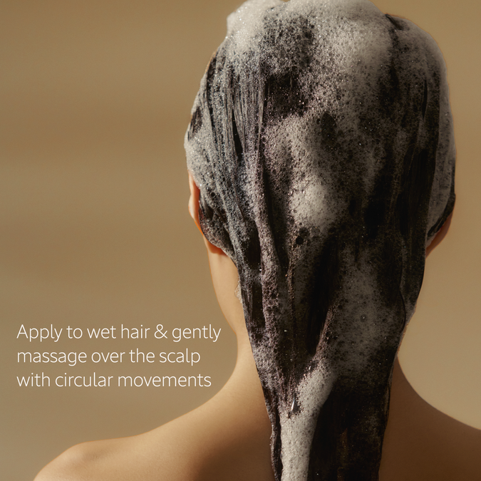 Az miqdarda şampunu ovcunuza tökün və dairəvi masaj hərəkətləri ilə saçlar və baş dərisinə çəkin. Daha sonra isti su ilə yuyun.
